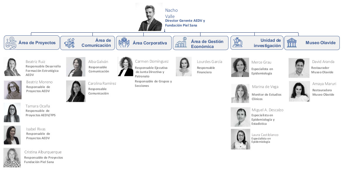- Asistente ejecutiva de la Junta Directiva y el Patronato: Carmen Domínguez juntadirectiva@equipo.aedv.es