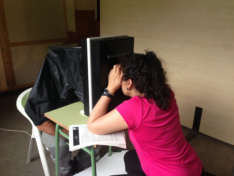 El objetivo de esta actividad era valorar el grado de fotoenvejecimiento de los corredores y fomentar los hábitos en fotoprotección. Para ello mediante una imagen obtenida a través del equipo Skinscope se valoró el daño solar de los corredores.
